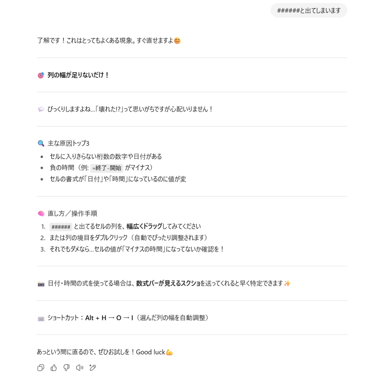必要な情報を入力するだけで、Excelの効率的な使い方に関するアドバイスを受けることができます。Excelレスキュー先生がわかりやすくサポートし、様々なExcelの課題を解決へと導きます! 文章や写真でお悩みを教えてください。