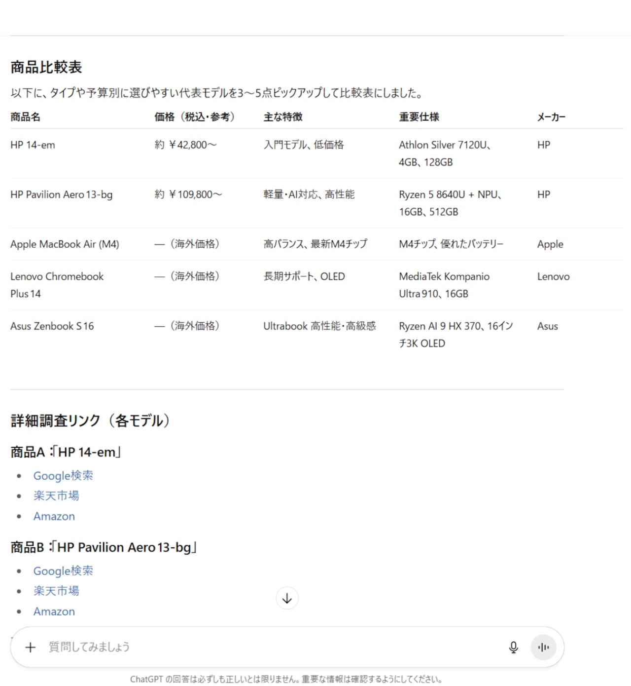 必要な情報を入力するだけで、さまざまな商品の比較が行えます。商品比較マスターがわかりやすくサポートし、購入決定をスムーズに進めるお手伝いをします!